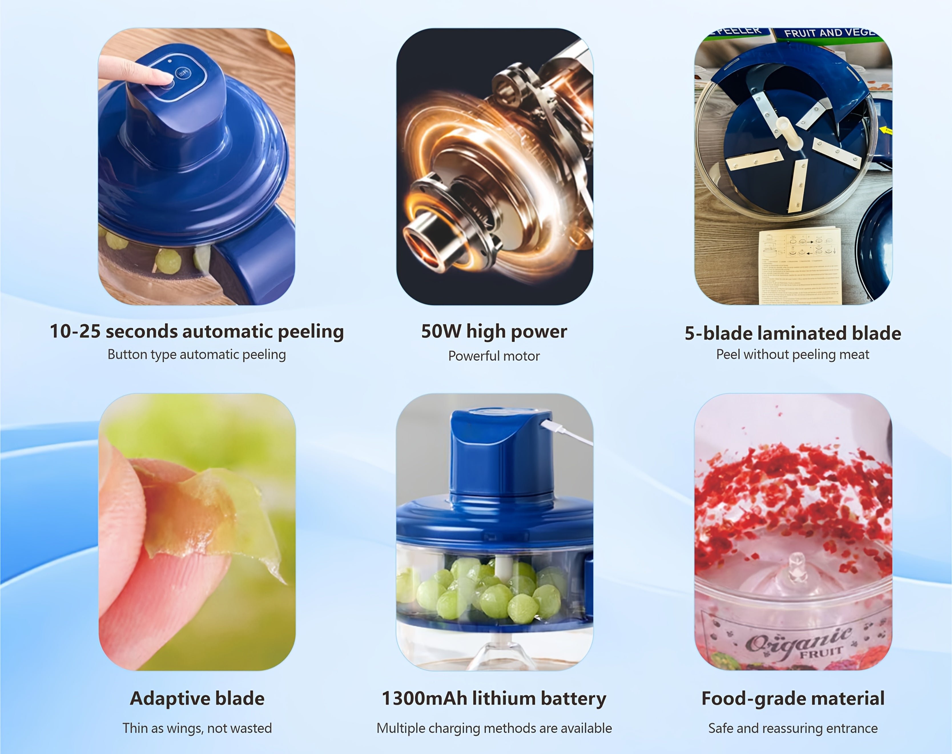 5-blade design peels skin without removing flesh