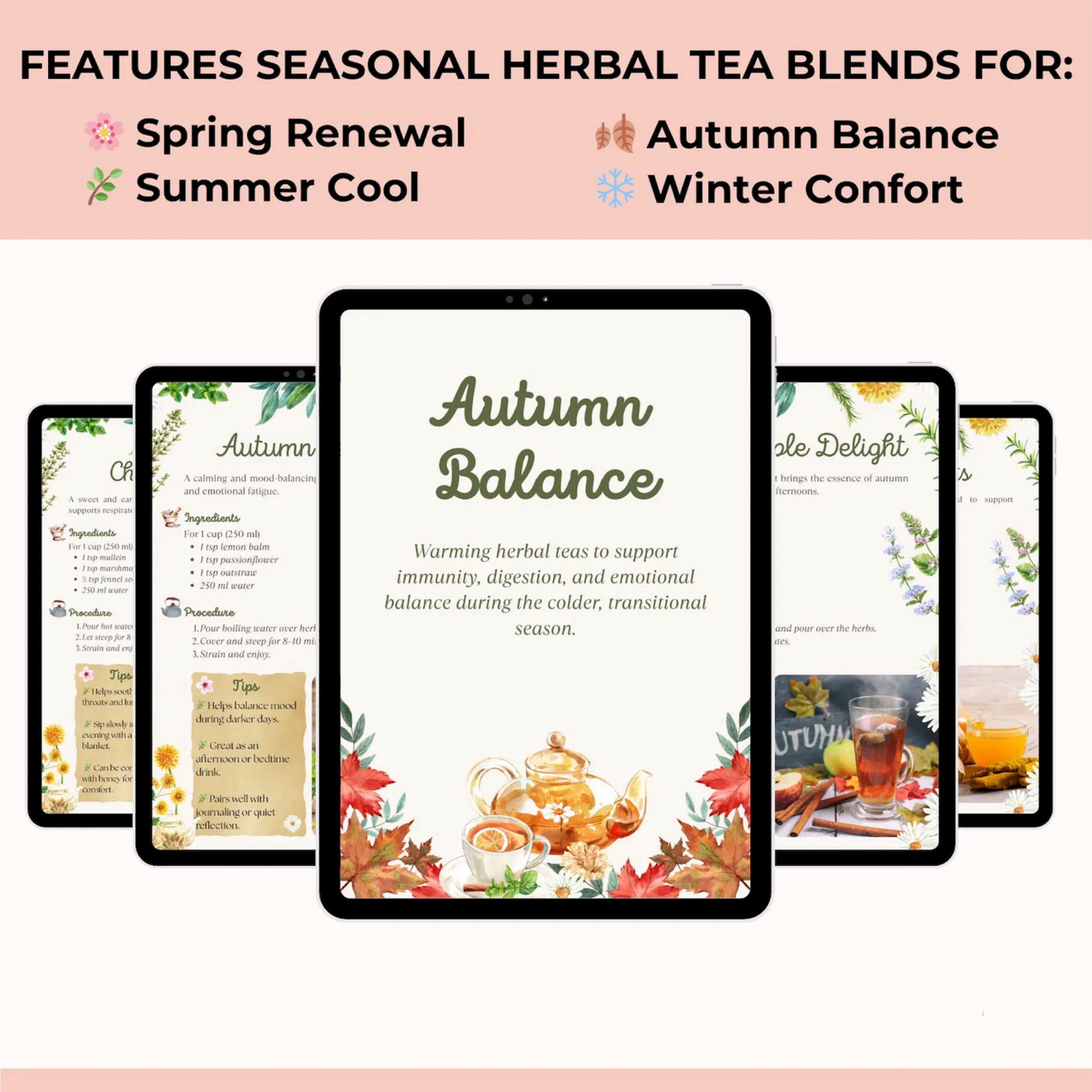 🫖 Discover the art of mindful tea blending with this Herbal Tea Recipes Collection, a beautifully designed digital guide featuring 50 original herbal tea blends across 10 nourishing categories — including seasonal recipes inspired by nature’s changing rhythms.